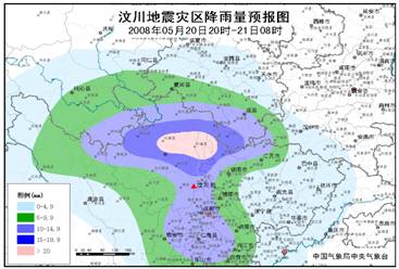 汶川地震災區(qū)降雨量預報圖(20日08時-20日20時)