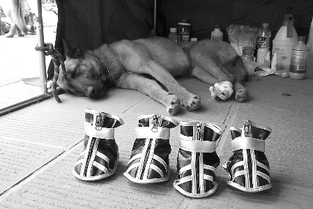這7只搜救犬平均每天出動十余次,有時候晝夜作戰(zhàn),體力消耗嚴重,有的腿部被劃傷。幾天來,成都防疫站的工作人員定期為搜救犬查體,都江堰市的多家寵物醫(yī)院也主動為搜救犬提供藥品和進行治療,同時,公安部有關部門專門為搜救犬配制了“犬鞋”,便于搜救犬在更復雜的廢墟環(huán)境下工作,避免遭受鋼筋和玻璃碴的傷害。