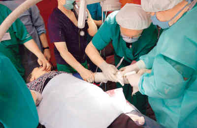 5月21日,俄羅斯醫(yī)生為黃文芬老人做手術。曾 碩攝