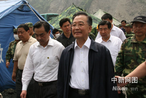 中新網(wǎng)5月24日電(記者 齊彬 孫宇挺)中國國務院總理溫家寶剛剛抵達四川地震災區(qū)震中汶川映秀鎮(zhèn)。
