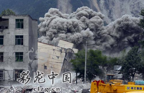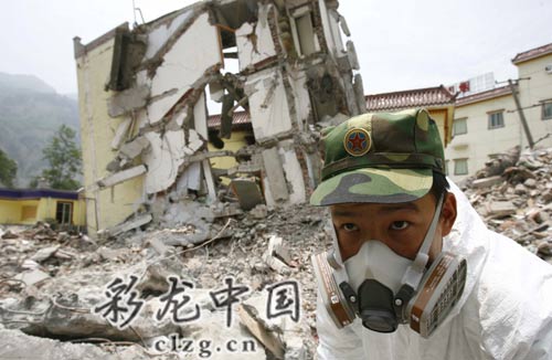 中午12時(shí)左右,在鎮(zhèn)中心附近,尖銳刺耳的哨聲,一聲驚天動(dòng)地的巨響過后,巨大煙霧騰空而起——這是解放軍駐重慶某部隊(duì)對一棟居民樓進(jìn)行定向爆破,隨后,身著防化服的戰(zhàn)士進(jìn)入,進(jìn)行遺體清運(yùn)和廢墟清理。連日來,解放軍戰(zhàn)士對全縣城的街道和土壤一直在進(jìn)行消毒,進(jìn)出車輛也要噴灑藥水,將發(fā)生疫情的可能性降到最低。