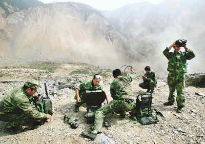 當(dāng)日16時,擔(dān)負(fù)為直飛堰塞湖的飛機(jī)提供準(zhǔn)確氣象資料任務(wù)的成都軍區(qū)空軍氣象觀測小分隊向唐家山進(jìn)發(fā)。