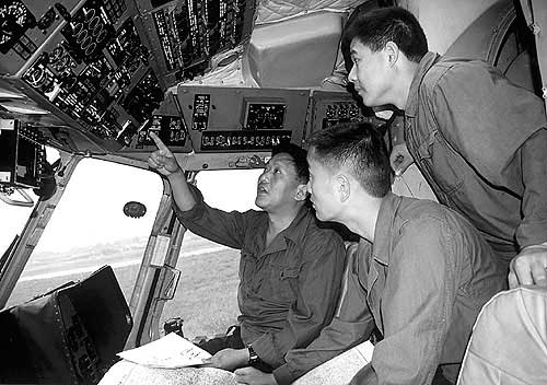 機長邱光華,51歲,羌族,四川茂縣人。 1957年4月出生,1974年4月入伍,1976年6月入黨,大專文化,大校軍銜,四種氣象飛行指揮員、副師職特級飛行員,近年多次執(zhí)行軍事演習(xí)、衛(wèi)星回收和搶險救災(zāi)等重大任務(wù),總飛行時間5800多小時,榮立二等功2次,三等功4次。