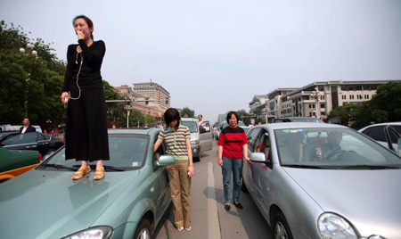 5月19日下午14時(shí)28分,北京長(zhǎng)安街上,女孩在無(wú)聲地哭泣。 法新社