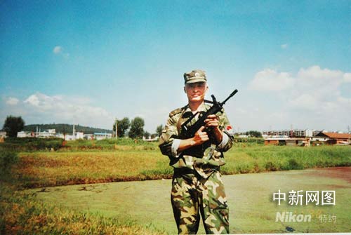 張鵬在軍營(yíng)里的照片。
