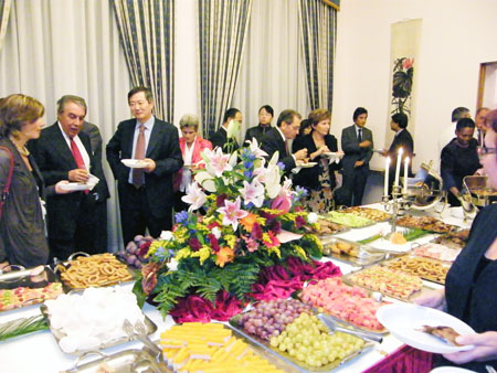 孫玉璽大使表示,中華人民共和國成立59周年特別是改革開放30年來,國家建設(shè)取得巨大成就。2008年對中國人民來說是極不平凡的一年,中國政府成功地舉辦了一屆高水準(zhǔn)的夏季奧運(yùn)會和殘奧會,加深了中國與世界各國的相互了解,增進(jìn)了友誼與信任,促進(jìn)了互利合作。