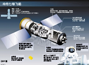 “神七”發(fā)射升空后,將在341公里的高度繞軌道漫游,就是在這個軌道高度,出艙的航天員要進行30分鐘的太空行走。同時飛船還將攜帶的一顆小衛(wèi)星放飛太空。根據(jù)任務(wù)要求,設(shè)計師們增加了艙外攝像機、照明燈、艙外扶手、復(fù)壓氣瓶,還有各種閥門和管路系統(tǒng)等。