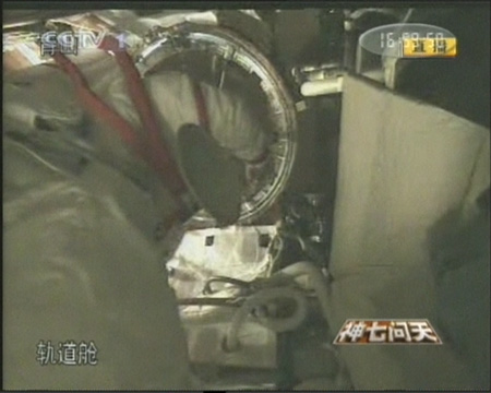 中新網9月27日電 中國首次空間出艙活動結束。今天下午約16時43分,中國“神七”載人飛船航天員翟志剛順利出艙,實施中國首次空間出艙活動。16時58分,翟志剛順利返回軌道艙,完成出艙任務。