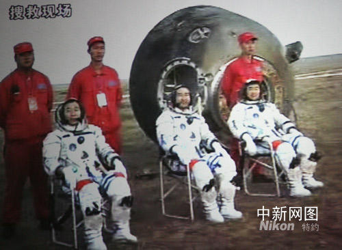 中新網(wǎng)北京九月二十八日電(記者 齊彬)二十八日十七時(shí)三十七分,中國“神舟”七號(hào)飛船在內(nèi)蒙古中部預(yù)定區(qū)域成功著陸。隨后,執(zhí)行飛行任務(wù)的航天員翟志剛、劉伯明和景海鵬安全出艙,中國神舟七號(hào)載人航天飛行獲得圓滿成功。