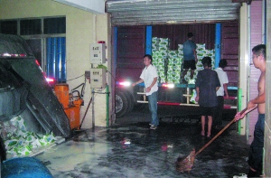 前天晚上7時許,位于廣州石井潭村附近的垃圾壓縮站內(nèi),先后兩輛大貨車將數(shù)百箱不合格盒裝牛奶運送到此然后集中進行銷毀。大量液態(tài)奶在這一過程中被直接排放到附近的石井涌內(nèi),附近居民表示因為天熱牛奶發(fā)酵導(dǎo)致臭氣沖天。昨日,記者再次來到該垃圾壓縮站,已經(jīng)有當?shù)卣块T工作人員趕到現(xiàn)場清理,并未有再次銷毀牛奶情況出現(xiàn)。