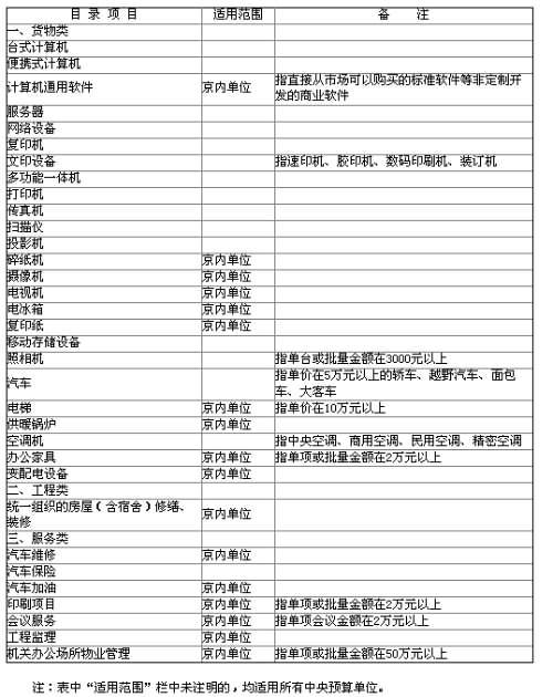 中央預算單位2009-2010年政府集中采購目錄及標準