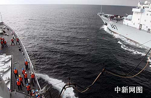 組圖:中國海軍護航編隊完成首次海上綜合補給