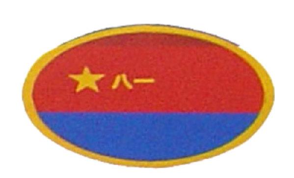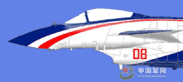 飛機(jī)編隊(duì)標(biāo)記為橢圓形狀,由上、下兩個部分組成,采用紅、黃、藍(lán)3種顏色,上部噴涂黃色五角星和八一字樣,底色為紅色;下部噴涂為藍(lán)色。(見圖15)。