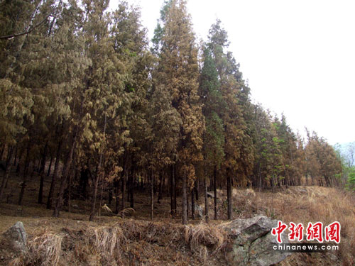 中新網昆明5月14日電( 鄭加升) 百年不遇的大旱,無情的肆虐著云南的大地。三季連旱的天氣,導致云南省東川區(qū)的樹木開始大面積枯萎甚至死亡。