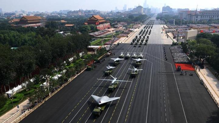 空中無(wú)人作戰(zhàn)方隊(duì)接受檢閱