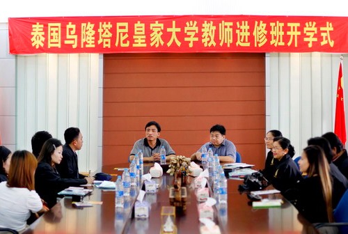 中新網(wǎng)10月11日電 據(jù)華僑大學(xué)華文學(xué)院網(wǎng)站消息,10月11日上午,泰國烏隆塔尼皇家大學(xué)教師團開學(xué)式在華僑大學(xué)華文學(xué)院一號樓會議室舉行。華文學(xué)院副院長陳旋波、培訓(xùn)部主任李金鈔等出席了開學(xué)式。