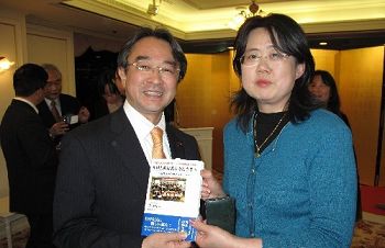 3月25日晚,日本眾議院議員、日中友好議員聯(lián)盟干事長近藤昭一在東京親切會見了日本僑報社社長張景子。張景子向近藤昭一介紹了有關(guān)中日作文大賽、特別是將于30日舉行的第五屆日本人漢語作文大賽頒獎式的情況,并向他贈送了剛剛出版的獲獎作品集《致中國旅行者--日本人的心聲》。近藤昭一勉勵日本僑報社繼續(xù)努力,為推動中日進一步友好作出更大的貢獻。圖為張景子向近藤昭一贈送《致中國旅行者》。 中新社發(fā) 段躍中 攝