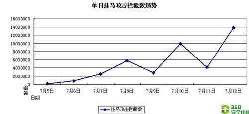 圖片說明:7月4日以來針對(duì)微軟視頻漏洞的單日“掛馬”攻擊攔截量走勢(shì)圖