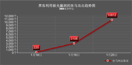 微軟IE“極光”0Day漏洞掛馬網(wǎng)站增長趨勢圖(數(shù)據(jù)來源:360安全中心)