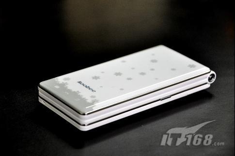 koobee K75有白色和粉色兩種顏色可選,這都是女生喜歡的顏色。筆者拿到的樣機(jī)是白色的,筆者可以看到Koobee K75白色的外殼上,點(diǎn)綴著幾顆淺灰色的雪花,以及短信、來(lái)電、音樂圖標(biāo),而后蓋下方,鏤空雕刻著星星和月亮。雪花、星星、月亮、音樂——這些,不正是最能觸動(dòng)女孩子心底浪漫的元素嗎?當(dāng)然,koobee K75最潮的地方還不是這些如夢(mèng)如幻的圖案,當(dāng)手機(jī)有來(lái)電提示時(shí),手機(jī)上的雪花就會(huì)有層次地閃亮起來(lái),如片片雪花飄然而來(lái),又如晚間的螢火蟲兒,靜靜地發(fā)著光,那般的招人喜愛,你似乎可以聽見它的呼吸聲。毫無(wú)疑問,拿著這樣一款手機(jī),不管是在哪兒,你和你的手機(jī)都能讓人屏住呼吸,成為讓人羨慕的焦點(diǎn)。