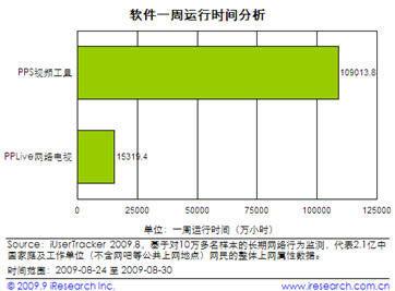 除了用戶覆蓋量,廣告主關(guān)心的莫過于網(wǎng)站的用戶黏性及用戶活躍度了!反應(yīng)這些情況的一個重要指標(biāo)就是軟件運行時間。以艾瑞的“軟件一周運行時間分析”指標(biāo)來看,PPS網(wǎng)絡(luò)電視達到109013.8萬小時,行業(yè)排名第二的軟件運行時間僅為15319.4萬小時,此項數(shù)據(jù)PPS領(lǐng)先第二名更是達到了7倍之巨。一方面,軟件運行時長反映出用戶在其平臺上獲取的內(nèi)容更多;另一方面也折射出PPS客戶端豐富的內(nèi)容與流暢清晰的視聽體驗讓其海量的終端用戶“欲罷不能”。