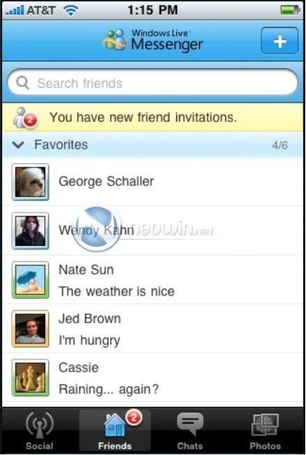 iPhone版的Windows Live Messenger應用程序將包括圖片分享,聊天及社交流功能。