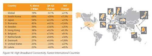 圖4:網(wǎng)速超過5Mbps的各國(guó)網(wǎng)民比例
