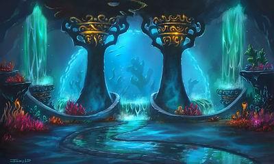泰坦們將這片原始的空間依照四種元素的特性而劃分為四個(gè)屬性截然不同的元素異界。多年來,地、水、火、風(fēng)這四種元素陷入了永無止境的爭(zhēng)斗,在他們國(guó)度的邊界不斷展開大規(guī)模的戰(zhàn)斗。在元素位面的其中一個(gè)異界之中,有一片廣闊的大海名為無盡之淵,也就是水元素所在的領(lǐng)域。傳說這個(gè)水之國(guó)度是由一個(gè)無比強(qiáng)大的生物“獵潮者”奈普?qǐng)D隆所統(tǒng)治,他擁有一柄強(qiáng)大無比的武器,據(jù)說擁有這個(gè)神器的人即擁有掌控艾澤拉斯所有海域的權(quán)力。時(shí)至今日,這個(gè)神器仍安穩(wěn)地存放在水元素的異界之中…但不久之后一切即將改觀。