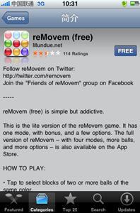 ⑷ 點擊“Top Free”進(jìn)入免費游戲目錄,選中一項免費游戲(如reMovem),進(jìn)入確認(rèn)安裝界面