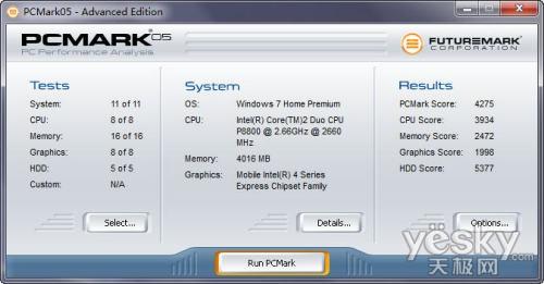 PCMark05 是考察筆記本綜合性能的測(cè)試軟件,在測(cè)試中我們采用了集顯模式,測(cè)試總成績(jī)?nèi)匀辉?000分以上,其中處理器和硬盤(pán)部分表現(xiàn)出色,內(nèi)存和顯示部分一定程度拉低了總成績(jī),不過(guò)在獨(dú)顯模式下,分?jǐn)?shù)會(huì)有較大程度提升。