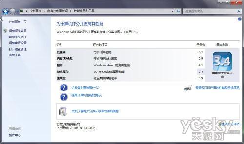 通過(guò)Win7檢測(cè)我們能夠很清晰看出Z55整體性能的表現(xiàn),其中處理性能最高,達(dá)到了6.1分,由于配備了4GB內(nèi)存配合64位操作系統(tǒng),內(nèi)存方面的性能也表現(xiàn)出色,達(dá)到了5.9分。另外硬盤(pán)部分也表現(xiàn)優(yōu)秀達(dá)到了5.9分。只是3D顯示部分稍顯不足僅為3.4分。不過(guò)對(duì)于商務(wù)用戶(hù)來(lái)說(shuō),3D部分在實(shí)際應(yīng)用中并不太多,況且配備9400M獨(dú)立顯卡能夠流暢運(yùn)行目前大部分主流游戲和商務(wù)3D軟件。