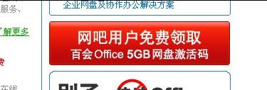 凡是網(wǎng)吧用戶,只要登錄百會首頁(),就可以看到免費(fèi)領(lǐng)取百會Office 5G網(wǎng)盤激活碼的活動按鈕。