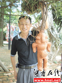 王先生說,早上9時許,家門口兩個小伙子正提著一蔸“人”形植物在吆喝。“我跟賣主討價還價后,只花了400元買下來了!