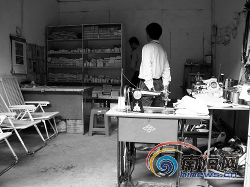執(zhí)法人員在“張醫(yī)生牙科”的診所看到,這家診所的醫(yī)生沒有執(zhí)業(yè)證書,診所也沒有《醫(yī)療機(jī)構(gòu)執(zhí)行許可證》,屬于非法行醫(yī)。診所的負(fù)責(zé)人說,這家牙店是今年8月開始營(yíng)業(yè)的,沒有多少生意。最后,執(zhí)法人員下發(fā)了行政處罰通知,勒令其停業(yè),并沒收了兩臺(tái)牙科綜合治療機(jī)!叭绻蛔屑(xì)看,我們還以為是家裁縫店呢!”記者跟隨執(zhí)法人員來(lái)到了一家裁縫店,裁縫店里還有診所營(yíng)業(yè),還有兩個(gè)病人正躺上椅子上打吊針。記者看到,店門口放著一臺(tái)裁縫機(jī),機(jī)子旁邊擺了一個(gè)桌子,上面擺滿了顏色各異的線,而墻壁一側(cè)掛滿了褲鏈,另一側(cè)墻壁掛滿了空的輸液瓶。