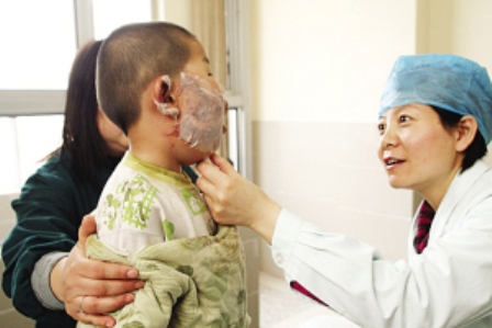 陽陽的主治醫(yī)師吳靜告訴記者,陽陽主要是面部和手部被燒傷,其中面部燒傷面積達(dá)到60%,基本都是深I(lǐng)I度,部分達(dá)到深I(lǐng)II度,燒傷情況比較嚴(yán)重,即使完全康復(fù),以后面部也將留下疤痕。(秋實(shí) 張凌飛)