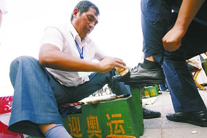 免費擦鞋為奧運做貢獻