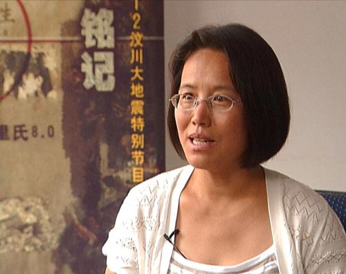 岳靜玲:當時我也失去了親人,我的奶奶、叔叔和嬸嬸,但是當時我沒哭,其實悲痛應該是一樣的,也很悲痛,我沒哭,我把這個感情壓抑下去了,其實痛苦還在,只是我沒表現(xiàn)出來。通過這個小女孩,其實小女孩的經(jīng)歷也觸動了我,其實我也在思念他們,他們是我的親人,我也在想,我也很痛苦,在回來的時候,我們從帳篷回來的時候,我一路上也在掉淚,一邊想一邊掉淚,為小女孩掉淚,其實也為我。而后我也覺得一陣輕松,因為我?guī)椭伺,完成了向她媽媽告別,她現(xiàn)在已經(jīng)承認了事實,馬上確實已經(jīng)走了,并且她向媽媽承諾,她要好好活著,她有了這個信念,她不論遇到什么困難都會堅強地活下去,同時也為我自己慶幸,找到了我對親人那種思念的感覺,并且把這種情緒通過我在跟小女孩聊的過程中,其實我也宣泄出來。