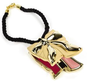 蝴蝶結(jié)向來是時(shí)裝與彩妝大師圣羅蘭最愛的象征,這個(gè)閃亮的金色蝴蝶結(jié)是再適合不過的手鏈或包包掛飾。打開它的奢華翅膀,展現(xiàn)在你面前的則是兩款喜慶的組合:紅莓色唇膏+粉嫩唇彩,并散發(fā)著誘人的芒果味道