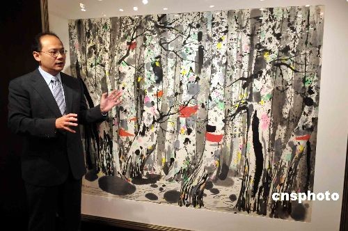圖為預(yù)料成交價(jià)超過四百萬港元吳冠中名作《白樺林》。中新社發(fā) 譚達(dá)明 攝