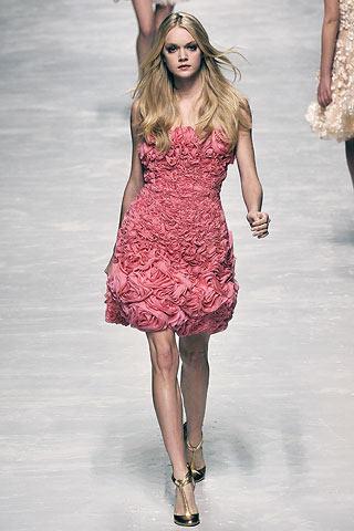 在08秋冬的T臺上,設(shè)計(jì)師們注重在面料上創(chuàng)造出極富肌理質(zhì)感的細(xì)節(jié)來裝飾服裝。一件細(xì)碎褶皺裝飾的粉色連身裙看起來那么與眾不同,而這正是因?yàn)檫@種富有結(jié)構(gòu)紋路的面料能帶來神奇的三維立體效果的原因。編輯精選出十件本季富含此趨勢的單品為你扮美提供更多的選擇。