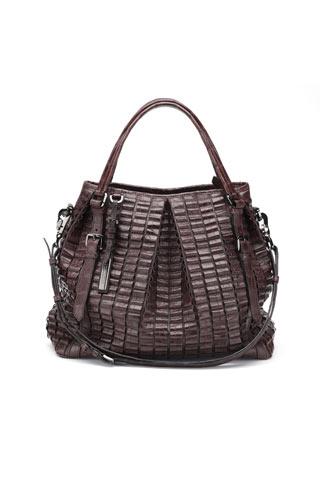 深棕暖調(diào)讓鱷魚(yú)皮的野性收斂了不少,再把這樣堅(jiān)硬的皮革整齊排列與褶皺處理,包身?yè)碛辛硕询B體積感,就像是竹節(jié)被串連在了一起一般擁有雕刻的肌理質(zhì)感。