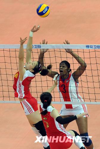 在以0:2落后的絕境下,中國(guó)女排的“青年軍”用一場(chǎng)絕地反擊詮釋了女排精神,在5日晚“櫻花衛(wèi)廚杯”2009年中國(guó)國(guó)際女排精英賽昆山站最后一場(chǎng)比賽中,中國(guó)隊(duì)以3:2逆轉(zhuǎn)擊敗古巴隊(duì),從而以三戰(zhàn)全勝的戰(zhàn)績(jī)獲得本次比賽冠軍。