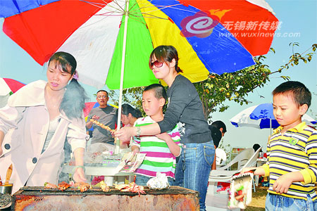 10月12日,在無錫濱湖區(qū)一個“農家樂”旅游點,來這里休閑的人們與孩子一起燒烤。近幾年來,我市依托資源優(yōu)勢,大力發(fā)展生態(tài)觀光旅游業(yè),推出“農家樂”等一些品牌景點和項目,吸引了眾多游客和城區(qū)市民度假休閑,既豐富了旅游內容,又增加了當?shù)剞r民收入。