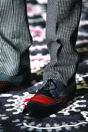 這個秋冬,男裝的色彩除了單純的黑灰藍(lán)白之外,比較明顯地多了一組明亮而有陽光氣息的色彩。大塊印第安粉紅針織衫搭配海軍藍(lán)圍巾;艷綠色的細(xì)格子毛衣與深紫紅碰撞;交織著茴香色、印度玫紅和珍珠色的真絲方巾讓莊重的西裝、大衣生動非凡……有品位的男人要學(xué)會在衣著中用對比鮮明的色彩詮釋內(nèi)心熱情,顯現(xiàn)隨性灑脫的一面。(文并圖/卓群)