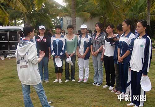 (海南外國語學(xué)院的志愿者一早趕到彩排現(xiàn)場,集中精力聽從歡樂節(jié)導(dǎo)演指示)
