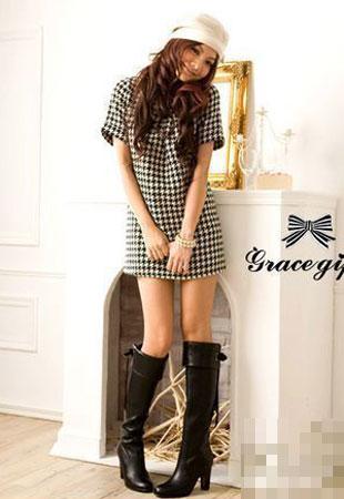 愛(ài)做夢(mèng)、多愁善感、和善溫柔的雙魚(yú)座,可以說(shuō)是12星座中最女性化的。黑色高跟長(zhǎng)筒靴非常百搭,翻折的設(shè)計(jì)能讓短腿的MM也如愿顯出修長(zhǎng)美腿,在回暖的2月,走女性化路線的雙魚(yú)座女生能放心穿上連身短袖裙,黑白格子非常復(fù)古啦,配上珍珠手鏈更顯示女性魅力。這樣可愛(ài)的你,桃花運(yùn)怎能不大旺呢?!