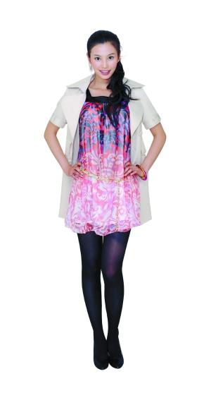 春天忽冷忽熱,里外兩件套的搭配可以隨著溫度變化增減衣物。里面,是具有夏天感覺的薄雪紡裙,外面,是百搭米色的中袖風衣裙。內(nèi)外長度相仿,露出少少裙擺,神秘又浪漫。