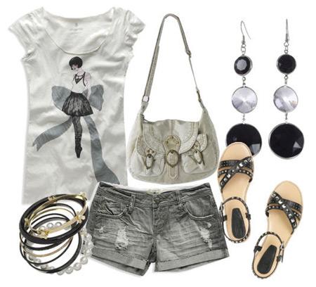 T搭配今夏熱門的灰色做舊翻邊牛仔短褲,酷味十足。