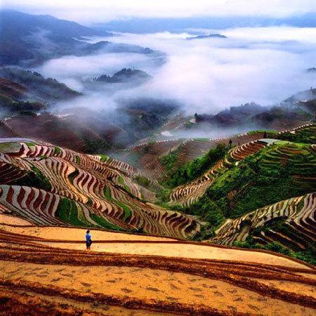 梯田的規(guī)模磅礴壯觀、氣勢(shì)恢宏,線條行云流水、瀟灑流暢,為天下梯田所望塵莫及;雖說南國(guó)山區(qū)處處有梯田,可是像龍脊梯田這樣大規(guī)模的集中實(shí)屬罕見。從流水湍急的河谷,到白云繚繞的山巔,從萬木蔥蘢的林邊到石壁陡崖前,凡有泥土的地方,都開辟了梯田。垂直高度達(dá)五六里,橫向伸延五六里,那起伏的、高聳入云的山,蜿蜓的如同一級(jí)級(jí)登上藍(lán)天的天梯,像天與地之間一幅幅巨大的抽象畫……每位看見這一景色的游客,心靈也都會(huì)被深深地震撼!這是一種難以言表的,一種被大自然的雄奇以及人的偉力所引起的震撼!
