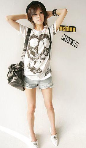 長(zhǎng)款T恤當(dāng)?shù)?變身活潑韓風(fēng)美少女(5)